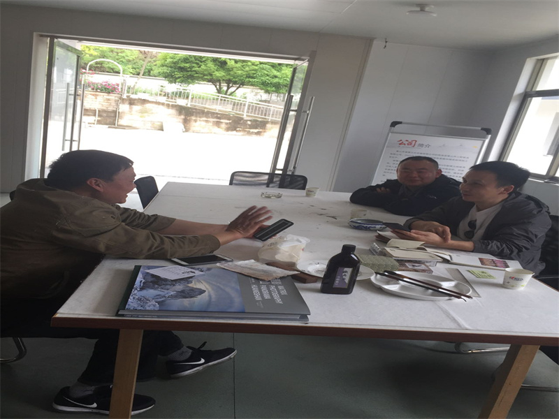 2021.4.13著名書法家劉老師、徽墨大師來(lái)公司參觀學(xué)習(xí),了解楮皮紙技藝,如何做出好楮皮紙,挑選好紙。